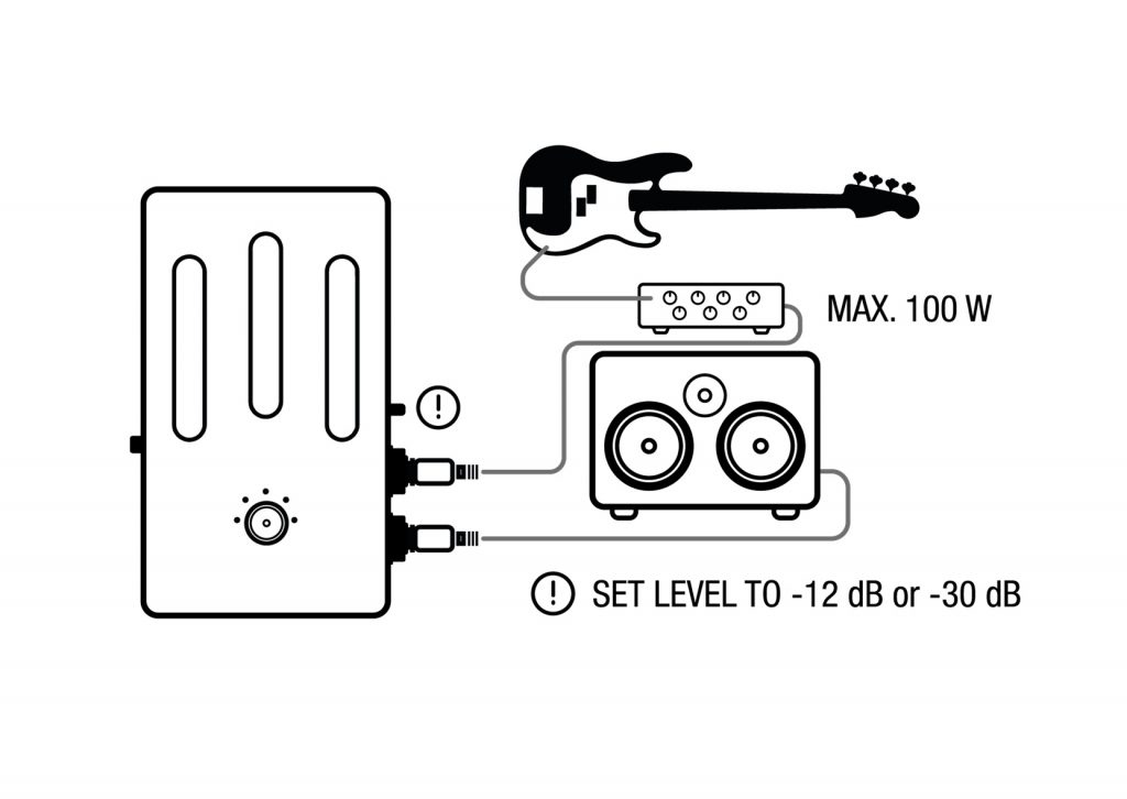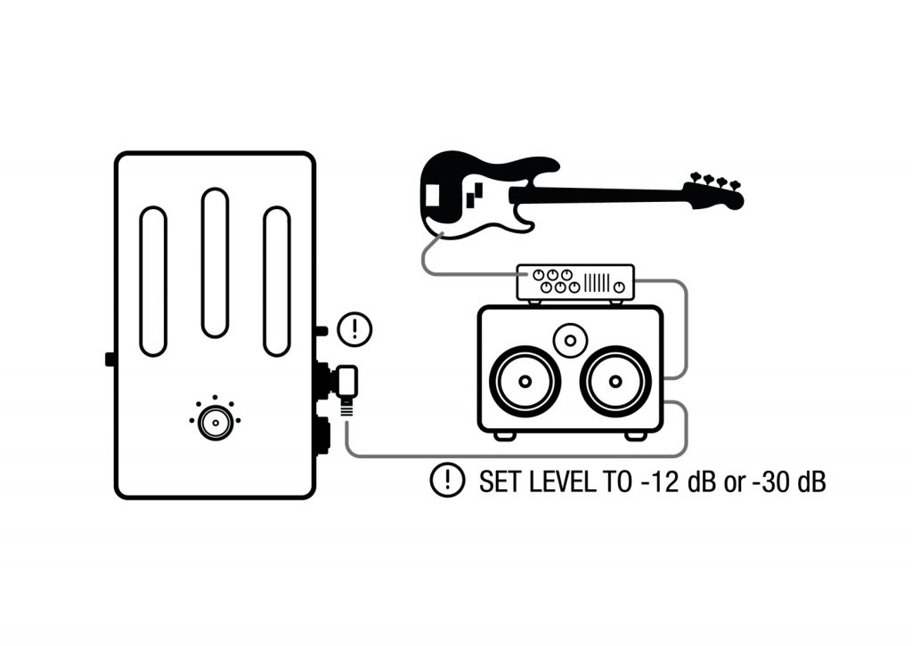 應用4: 從音箱頭(D類) power output到 “AMP IN”,Elemen 輸出所選擇的 cab sim 音色到XLR/耳機,此應用適用於沒有實體音箱但想要有箱體音色的需求。
