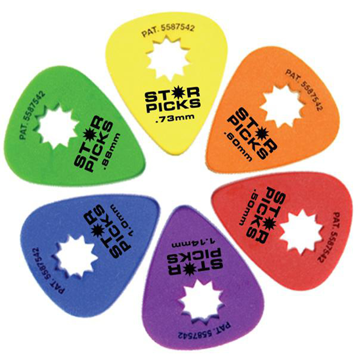 Star Picks 有各種流行的厚度,從薄如紙到跟指甲一樣厚,還用不同的顏色區分。