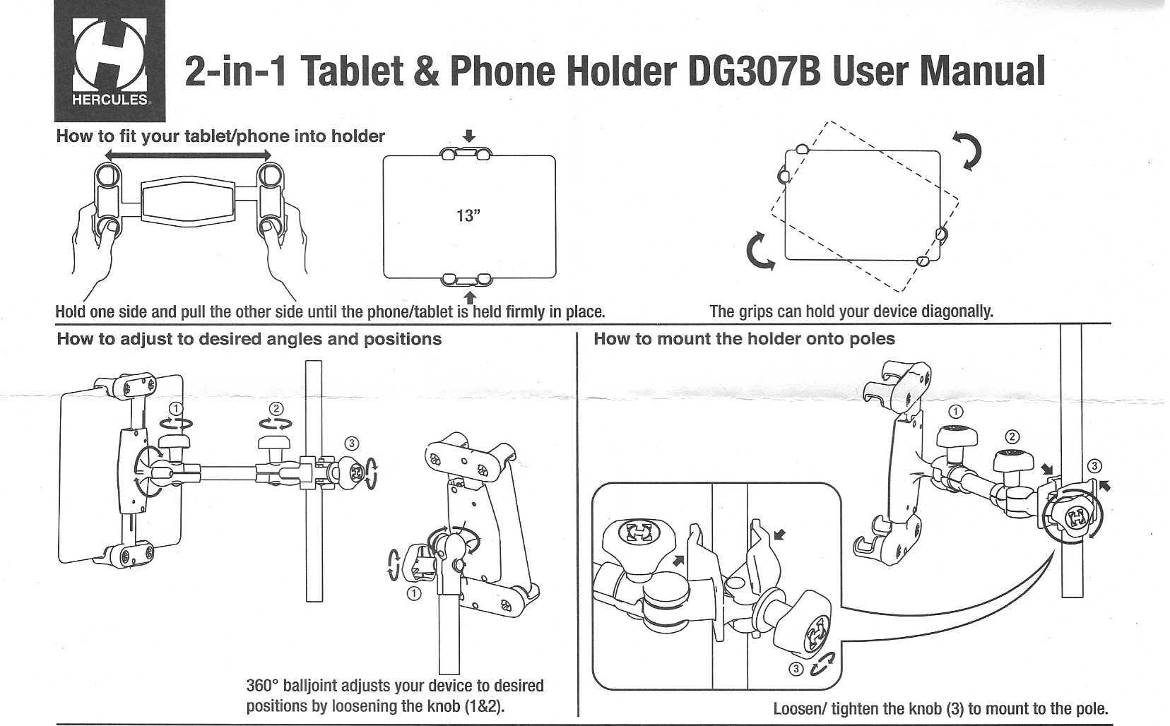 免運分期 Hercules 海克力斯 DG307B 2合1 平板/手機架