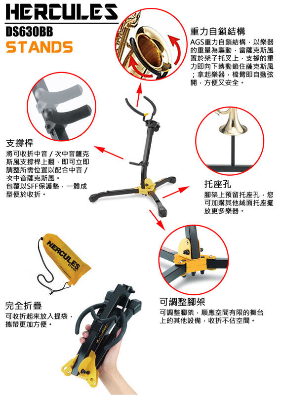 Hercules 海克力斯 DS630BB 中音/次中音 薩克斯風架 含攜行袋