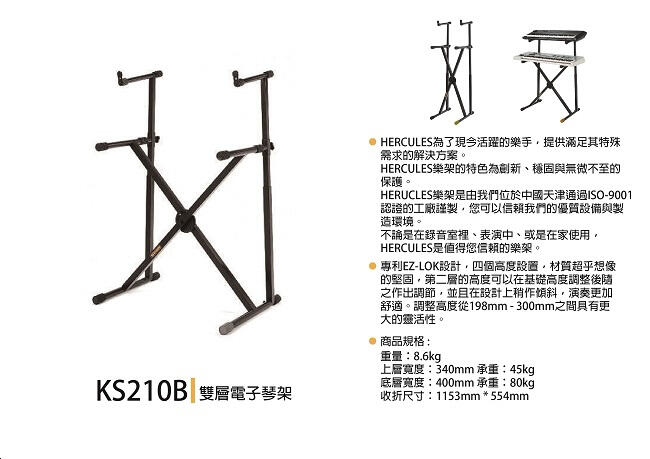 Hercules 海克力斯 KS210B X型 全新 公司貨 雙層 鍵盤架