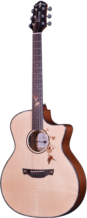 Soundhole Inlay:Humminbird Artwork Crafted With Combination Of Rosewood, Maple, Mahogany, Paduak