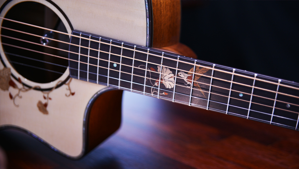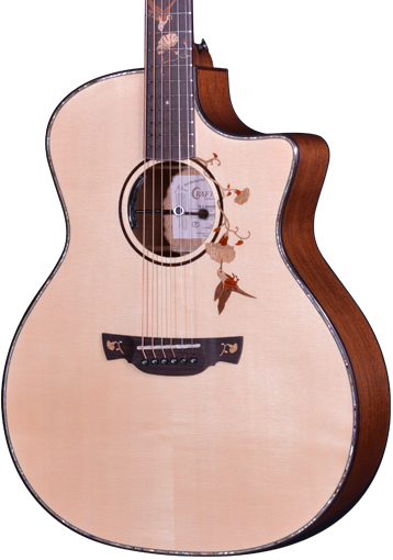 Fingerboard Inlay:Humminbird Artwork Crafted With Combination Of Maple, Mahogany & Paduak