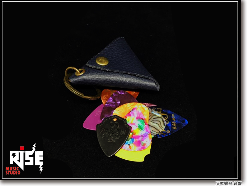 ROCK YOU 吉他 三角形 彈片 真皮 PICK夾 鑰匙圈+ 12片彈片組
