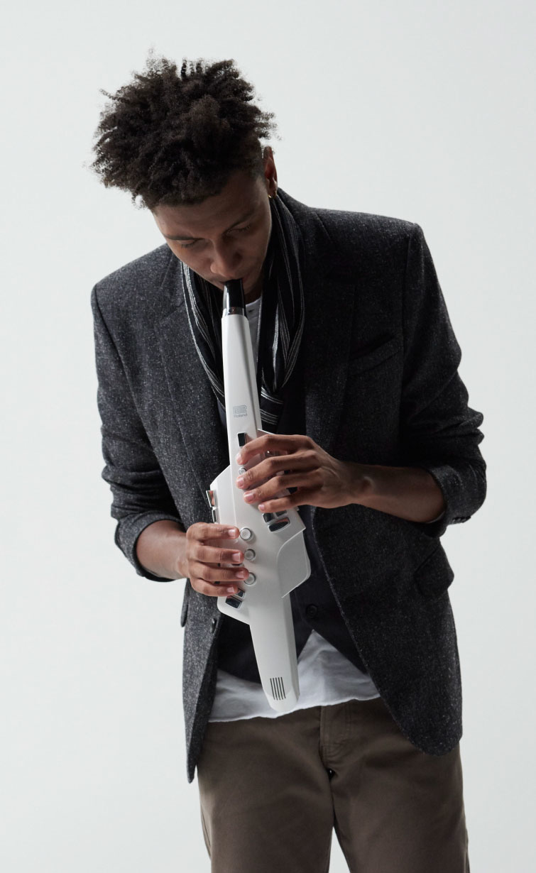 控制裝置:Breath sensor(呼吸感應器)、口咬感應器(Bite sensor)、演奏鍵(Performance keys)、八度音程鍵(Octave keys)、拇指控制器(Thumb controller)、音色鍵(Tone)